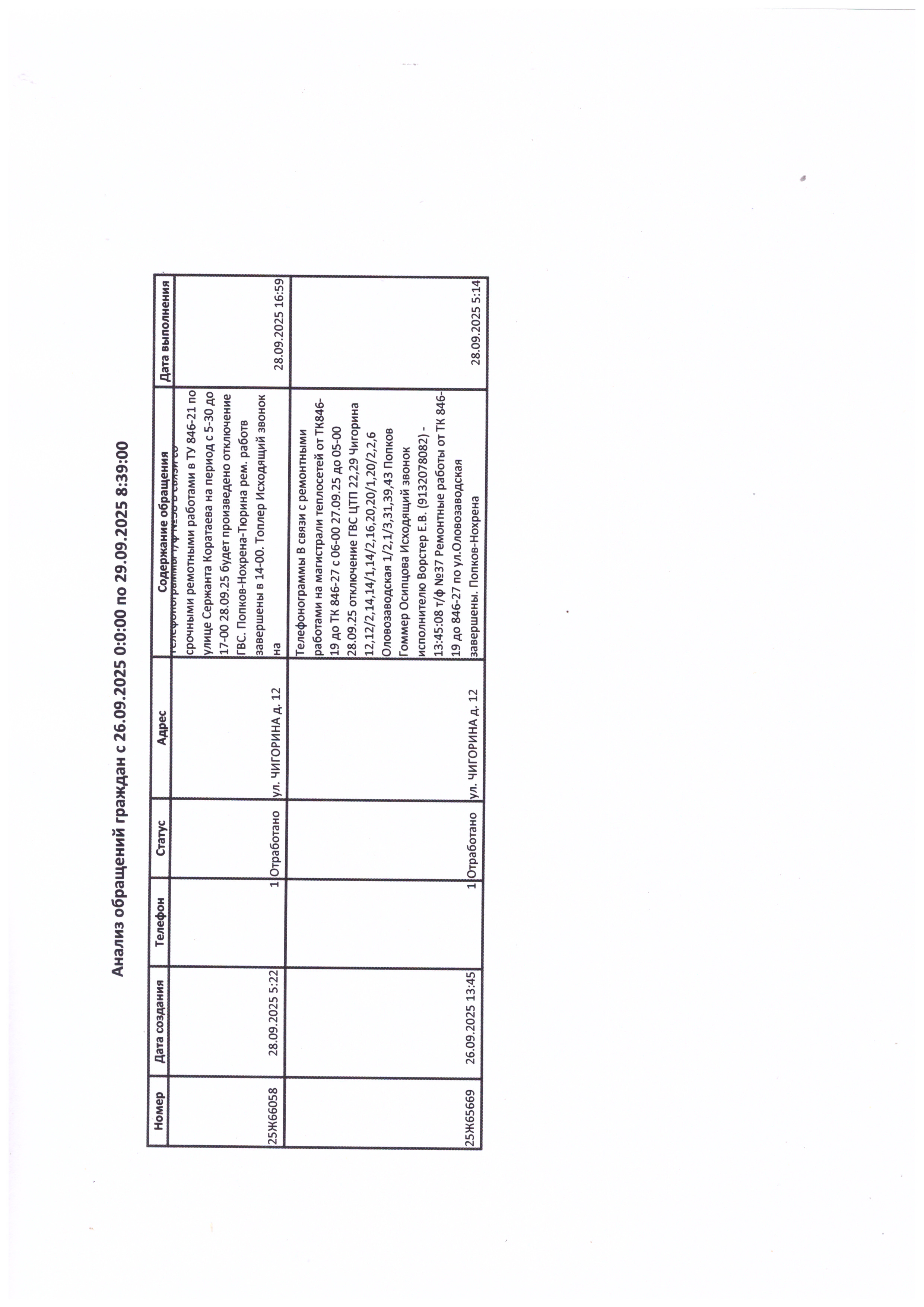 Здравствуйте, Алексан Николаевич! В ответ на Ваше обращение сообщаем, что 28.09.2025г. было отключение горячего водоснабжения по указанному адресу «Новосибирской теплосетевой компанией» (предприятием, входящим в состав СГК) по их телефонограмме.